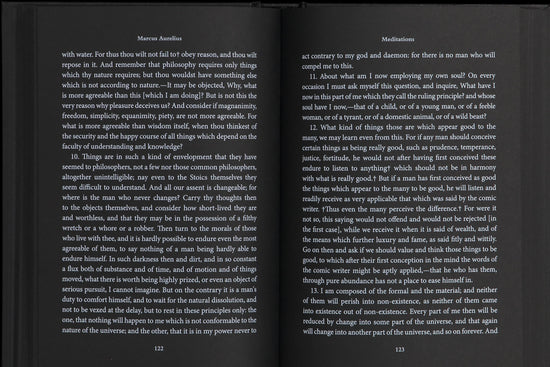 Meditations by Marcus Aurelius was the first book that we selected to be printed on black paper. This timeless classical book on stoicism, written almost 2000 years ago, still holds relevance in today's world. It was the perfect start for our project, and we were overwhelmed with the response from the public.