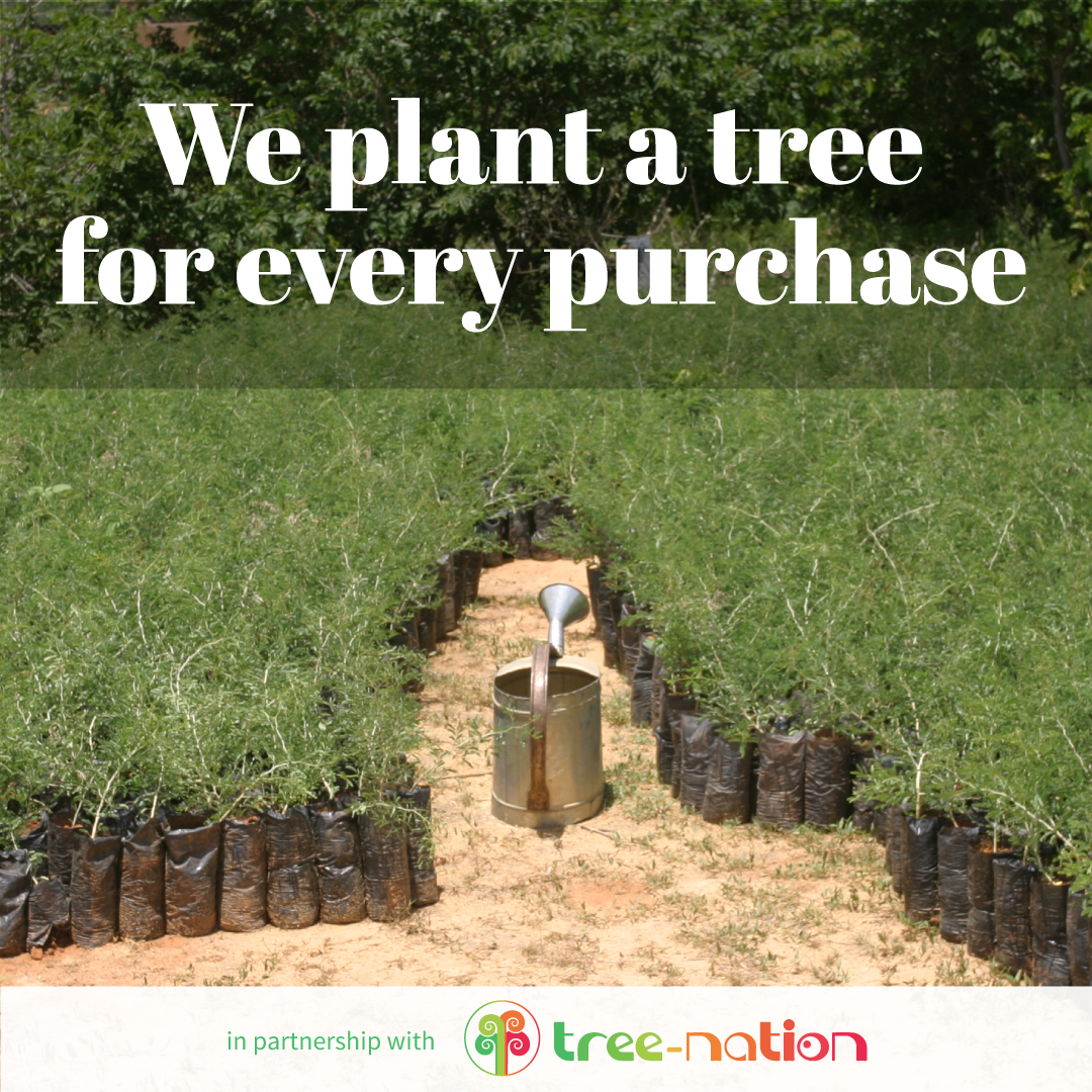 We choose to partner up with Tree Nation, an organization dedicated to recovering some of the most deforested areas in the world. Tree Nation works closely with local communities providing jobs and assuring that the traditional relationship of these communities with their natural environment remains assured for the next generations. Many of the trees that are planted provide not only food for local wildlife and promote biodiversity, but also play a pivotal role on local cultures as a source of medicine, natural fibers for traditional crafts and construction materials.